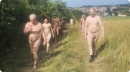 World Naked Bike Ride 2025 in Pirna (Sachsen) Auch dieses Jahr fand wieder ein WNBR in Pirna statt. Wir waren mit neun Mitfahrer:innen unterwegs. Die Tour wurde wie die Jahre zuvor von den Nacktwanderfreunden Sachsen e.V. und Martin Nitsche organisiert. Vom Startpunkt bei der Anlegestelle der sächsischen Dampfschifffahrt ging es gegen 10 Uhr entlang des Elbradweges los, der zugleich die Route der Eurovelo 7 Sun Route ist, über die tschechische Grenze nach Dolní Zlep ins Gasthaus Dolní Grund. Nach einem hervorragenden späten Mittagessen, ging es dann, natürlich nackt, die Strecke zurück nach Pirna. Da es ein sehr heißer und sonniger Tag bei wolkenlosem Himmel war, dürfte ein kurzes Bad zur Abkühlung in der Elbe nicht fehlen. So kamen wir gegen 18.30 Uhr wieder zum Ausgangspunkt zurück. Gerade rechtzeitig, denn das Wetter änderte sich schlagartig in Starkregen und Gewitter.https://nacktwanderfreunde.de