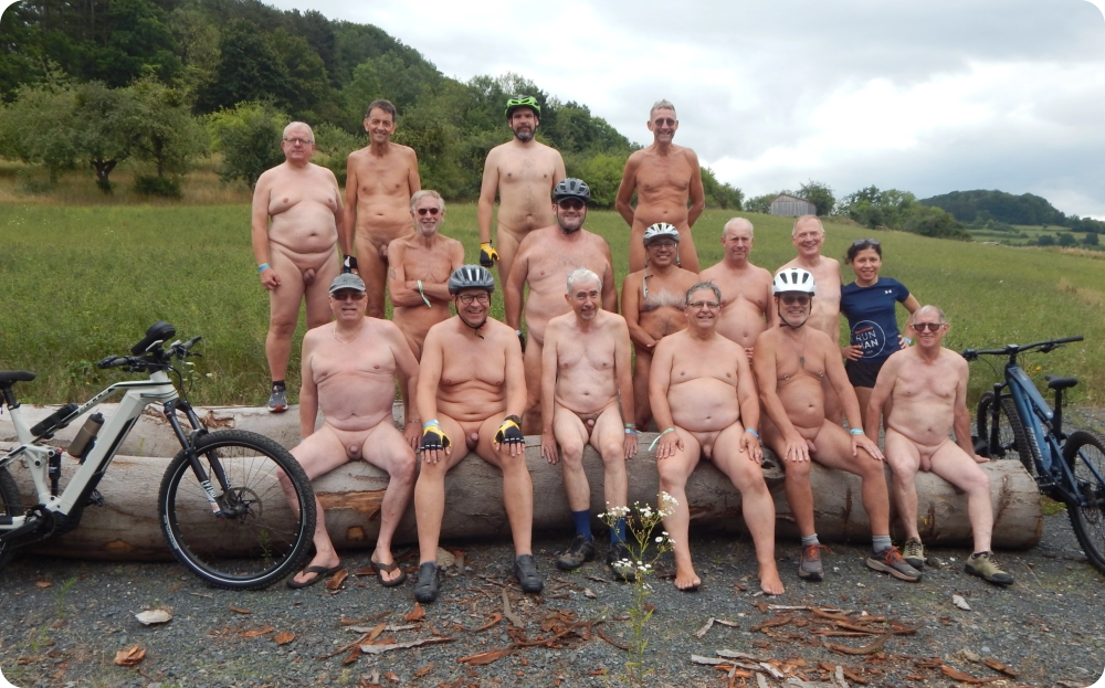 Zeit für einen kurzen Rückblick auf ein wettertechnisch launiges Jahr 2024. Das Frühjahr zeigte sich an den Donnerstagen eher regnerisch und kalt. Zwar begannen wir Anfang Mai die Saison bei schönem Wetter, aber am 23.05. wurden wir zum ersten Mal richtig nass und brachen die Tour sogar ab.Im Juni fielen wieder einige Termine dem wechselhaften Wetter zum Opfer, da ich selber aber mit einer Nierenschiene zu kämpfen hatte, die mit dem Mountainbike auf Kriegsfuß stand, musste ich eh bis Anfang Juli pausieren. Dann war der Stein raus und es konnte wieder gefahren werden.Über den Juli und August konnten wir uns nicht beschweren, die Touren fanden fast alle statt und zusätzlich radelte ich selber auch noch 2-3 mal die Woche nackt durch den Taunus.Zusammen mit Get Naked Germany und dem NB Rhein-Main e.V. hatten wir eine tolle Ausfahrt mit 20 Teilnehmerinnen und Teilnehmern.Insgesamt hat sich die Gruppe prima entwickelt, wir haben tolle Neuzugänge, sehr sympathische Naturisten, die toll in die Gruppe passen.In 2024 waren wir oft mehr als sechs Fahrer, an einem Termin waren wir zu elft. Wir hatten das große Privileg, dass wir einen Journalisten vom Zeit Magazin dabei hatten, Dimitrij Kapitelman und dass uns der tolle Fotograf Nico Schweig begleitete, der hervorragende Bilder von der Gruppe machte und die Atmosphäre sehr gut im Bild festhielt.Alles in allem also eine tolle Saison mit wunderbaren Menschen, die so wie ich sehr zu schätzen wissen, was nackte Aktivitäten in der Natur mit einem machen, welche Wohltat dies für Körper und Seele ist und wie sehr man sich nackt mit der Natur verbunden fühlt, die Wunder der Natur spürt, aber auch deren Verletzlichkeit und ihre Narben und Wunden fühlt.Wir alle sind sehr demütig und dankbar, dass wir in einem Land leben dürfen, in dem man uns mit Freundlichkeit und Toleranz begegnet und wir unserer Passion nachgehen dürfen!Ich persönlich bin sehr dankbar, für die tollen, nackten Momente, die ich in der Gesellschaft solch toller Menschen erleben darf!Ralf